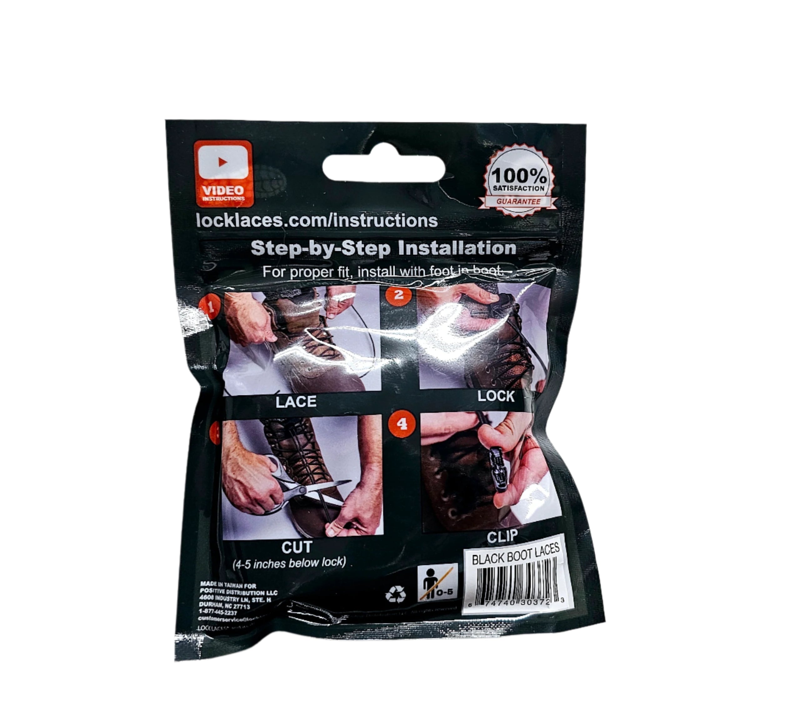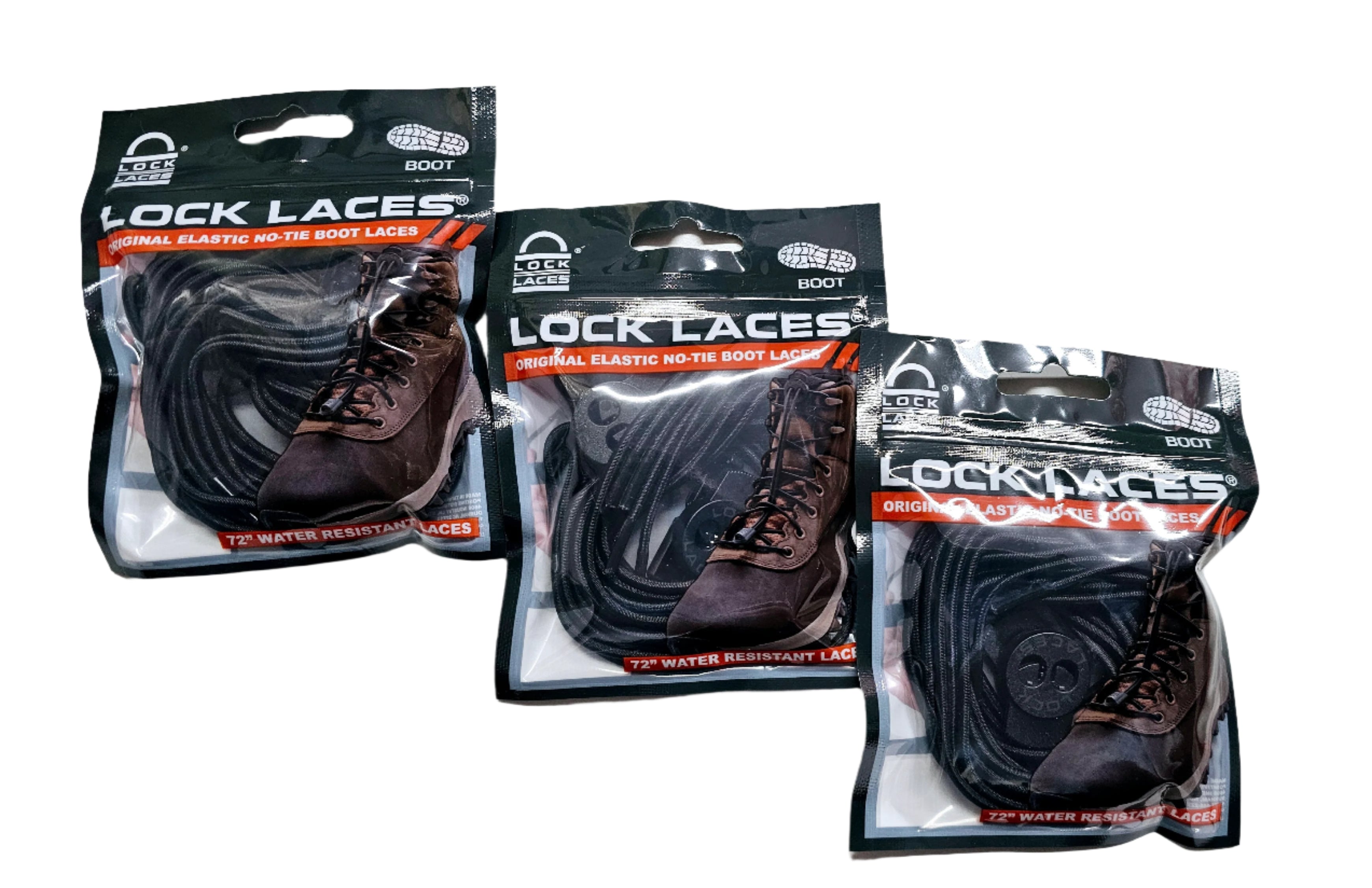 Lock Laces הם באורך 72 אינץ' (180 ס"מ) ועמידים במיוחד, מתאימים לכל מגפי השרוכים מנעלי הליכה, נעלי ריצה בגזרה נמוכה ועד מגפיים צבאיות.