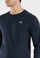 חולצת ריצה ארוכה לגברים שרוול ארוך צבע שחור חולצת ספורט ניו באלאנס New Balance Core Run