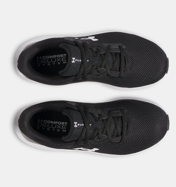 Under Armour Charged Pursuit 4 לנשים מגיעה עם חלק עליון מבד רשת נושם במיוחד, ריפוד מוקצף מסביב לקרסול ולשון לנוחות מירבית, ומדרס Deluxe Foam שמתעצב לפי מבנה כף הרגל.